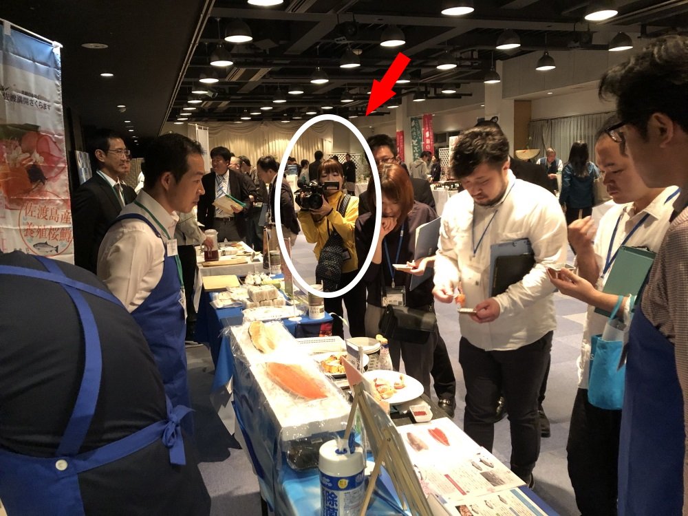 ↑多くのお客様が弓ヶ浜ブースに訪れてくださいました。あ、佐渡テレビが撮影中!